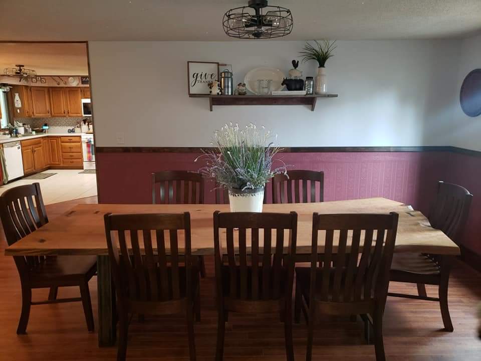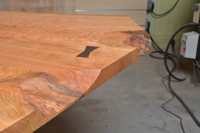 The lumber for this table was milled from a very large, very awesome wild cherry tree that had died and fallen in the timber behind my childhood home in Iowa. My dad cleared a path to the tree and pulled the logs out with his tractor. We milled the lumber together and I brought it back to Kansas to be dried.