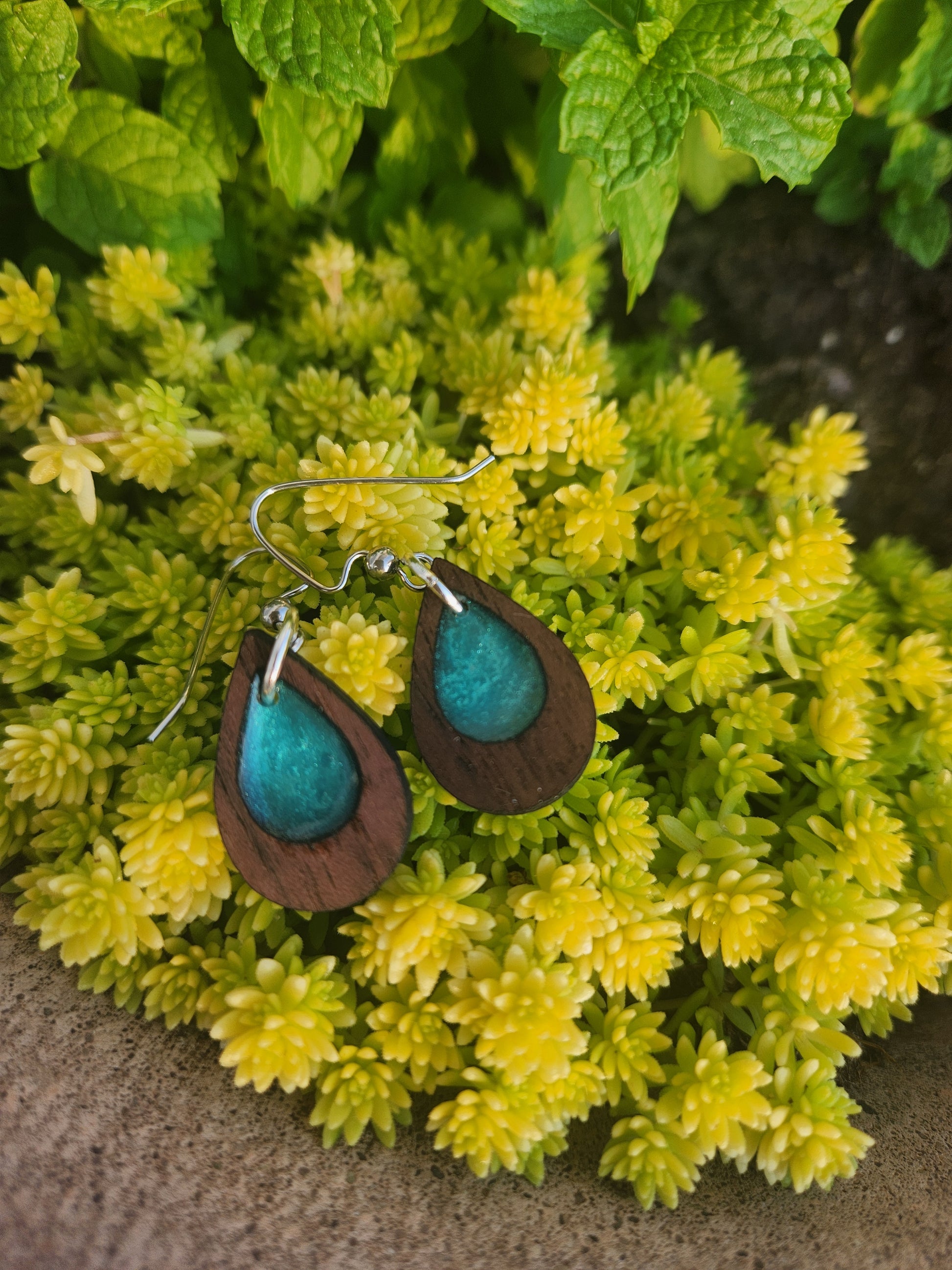 Hestia Petite Wooden Epoxy Dangle Earrings